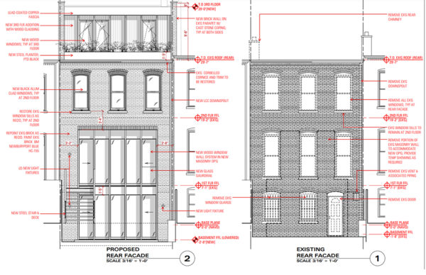 We do not object to the notion of a rear yard addition to this building but the combination of an inappropriateness in height, configuration and materials is three strikes against this proposal. We recommend that this proposal is rethought and reexamined. Perhaps one of these components can be stretched, but currently it’s a case of too many bites and not enough apple.